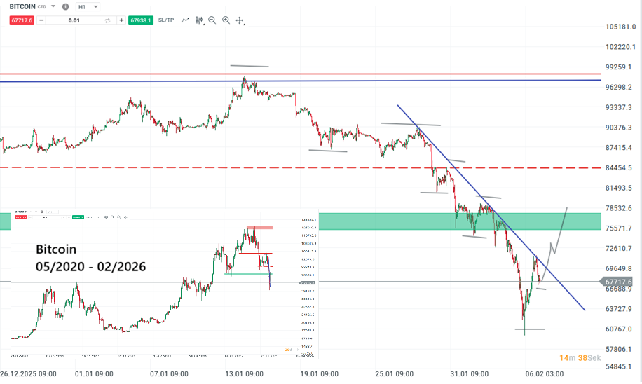 Die jüngsten Krypto News sorgen für Aufsehen: Bitcoin aktuell notiert deutlich unter wichtigen charttechnischen Unterstützungen. Nachdem bereits in der Vorwoche ein Bruch der Zone um 80.000 US-Dollar befürchtet wurde, kam es in den vergangenen Handelstagen zu einer massiven Abwärtsbewegung.