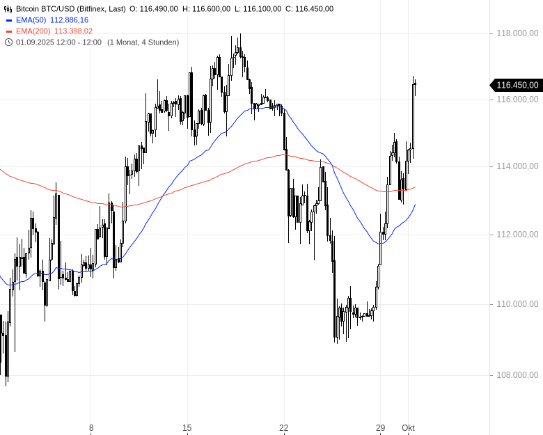 - Bitcoin BTC/USDKursstand: 117.552,03 $ (Coinbase Advanced) - Zum Zeitpunkt der VeröffentlichungVerkaufenKaufen
