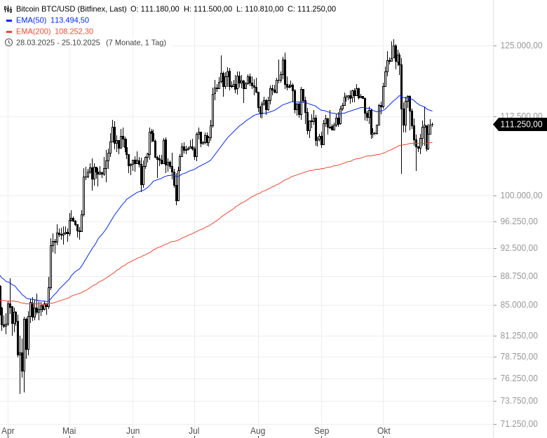 - Bitcoin BTC/USDKursstand: 111.933,08 $ (Coinbase Advanced) - Zum Zeitpunkt der VeröffentlichungVerkaufenKaufen
