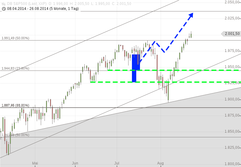 Heute hat der marktbreite S&P 500 Index in den USA wieder über 2.000 Punkten geschlossen. Wahnsinn. Der Index ist seit seinem Bärenmarkt-Tief im März 2009 um 200% angestiegen. Der Kurseinbruch von Juli und August dieses Jahres ist bereits wieder ausgebügelt. Seit 2 Handelstagen bricht der Index auf ein neues Allzeithoch. Das nächste charttechnisch ermittelte Kursziel liegt bei 2.037 Punkten. "The trend is your friend" und der Trend weist noch immer nach oben. Das ist Fakt.