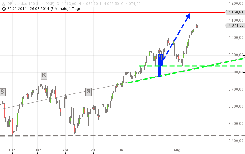 Der Nasdaq100 nähert sich seiner Zielmarke von 4.150 Punkten.