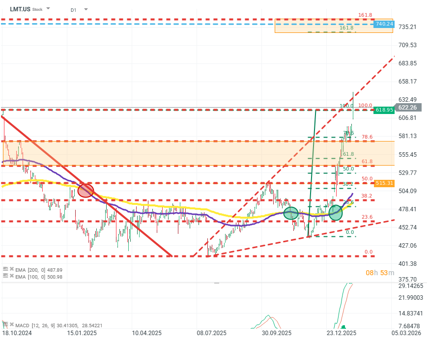 - Lockheed Martin Corp.Kursstand: 621,960 $ (NYSE) - Zum Zeitpunkt der VeröffentlichungVerkaufenKaufen