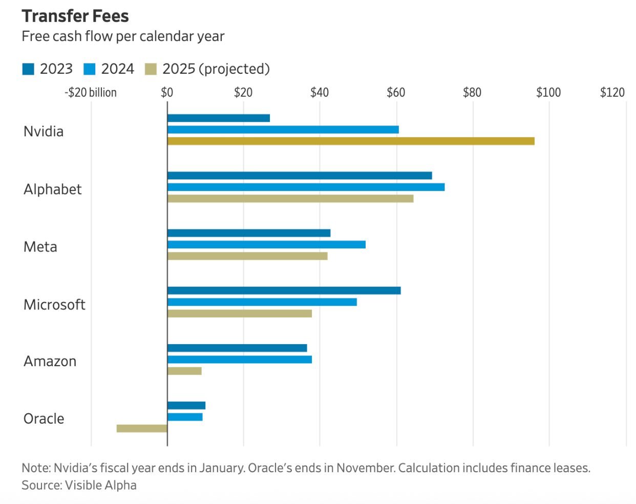 📌 Der Free Cashflow von Nvidia überragt die Vergleichsgruppe bereits deutlich. Oracle mit negativem FCF.