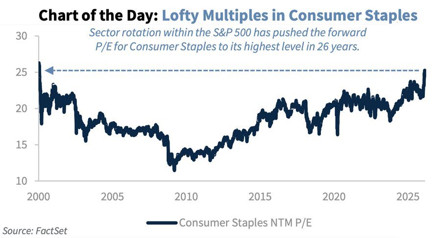 📌 Das Forward-KGV der Consumer-Staples-Unternehmen erreicht den höchsten Stand seit dem Jahr 2000.