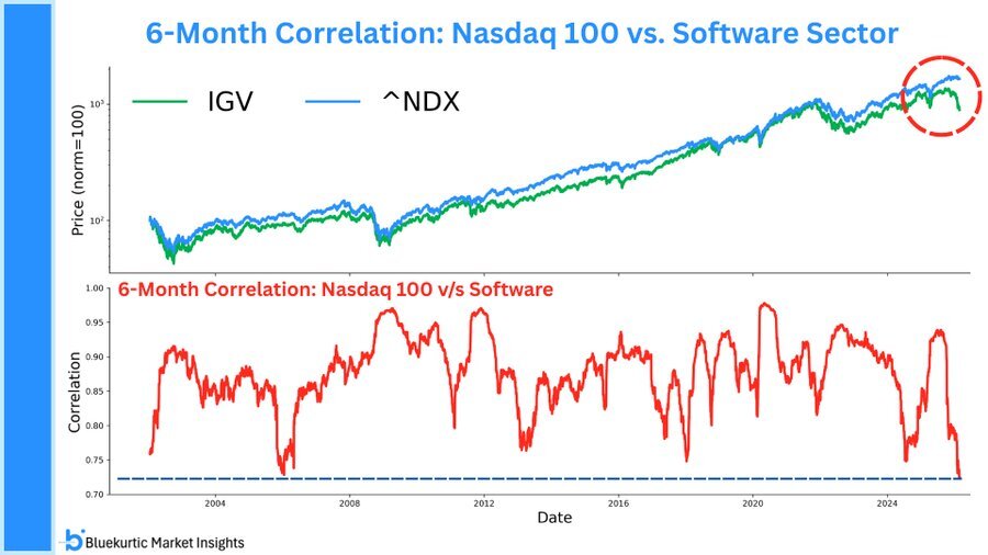 📌 Nasdaq entkoppelt sich von Software. Tiefste Korrelation seit 2001