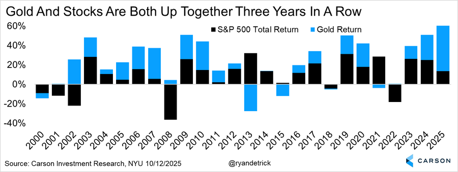 📌 Gold und Aktien steigen selten im Gleichschritt, aber jetzt schon das dritte Jahr in Folge.
