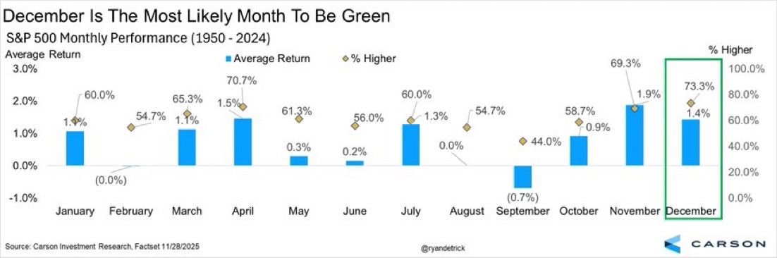📌 Dezember bleibt der verlässlichste Gewinnmonat, auch trotz zuletzt schwächerer Jahre
