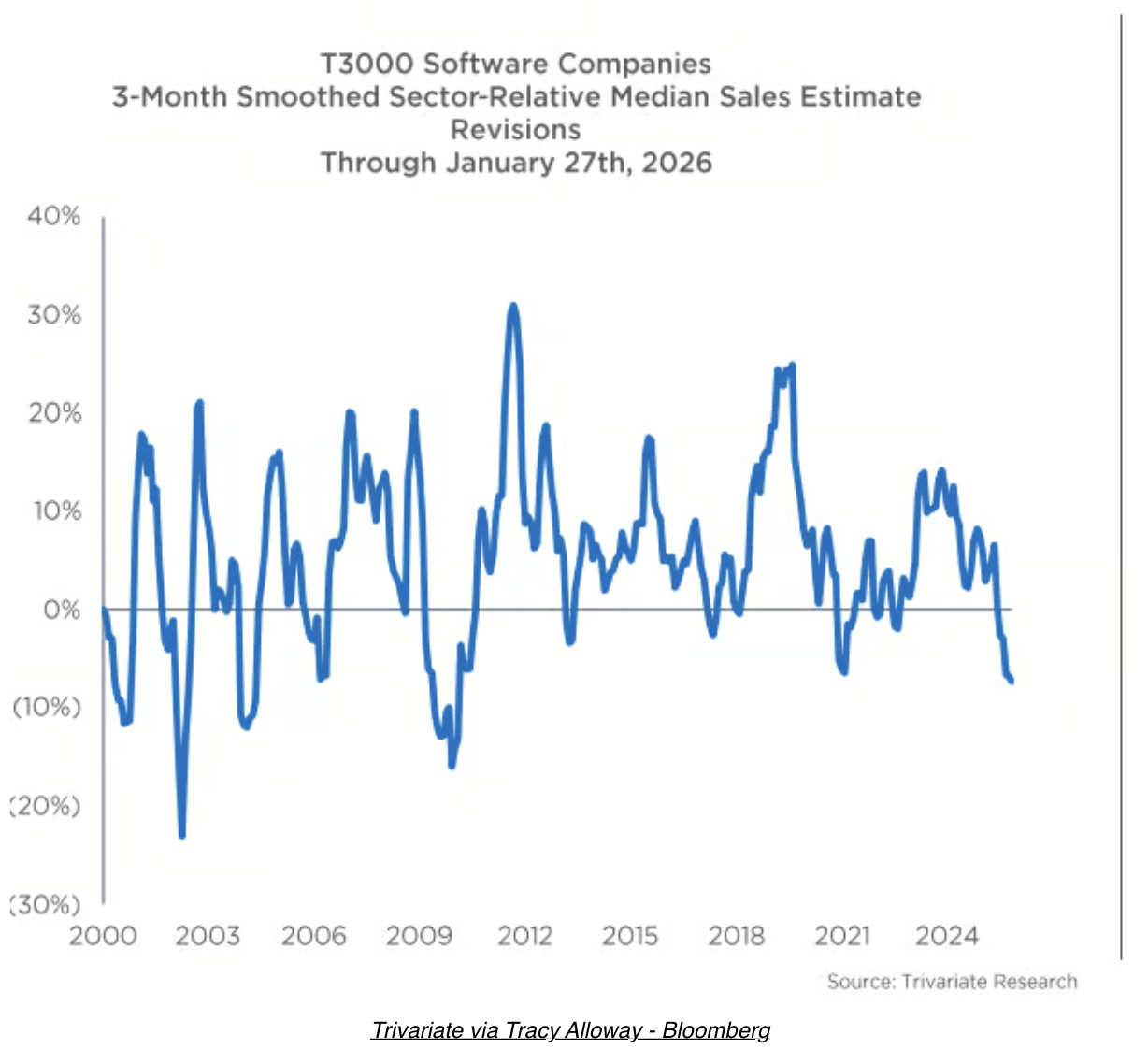 Die erwarteten Software-Umsätze über die rollierenden 3M sind im Vergleich zum restlichen Tech-Sektor so stark revidiert worden wie seit 2009 nicht mehr.
