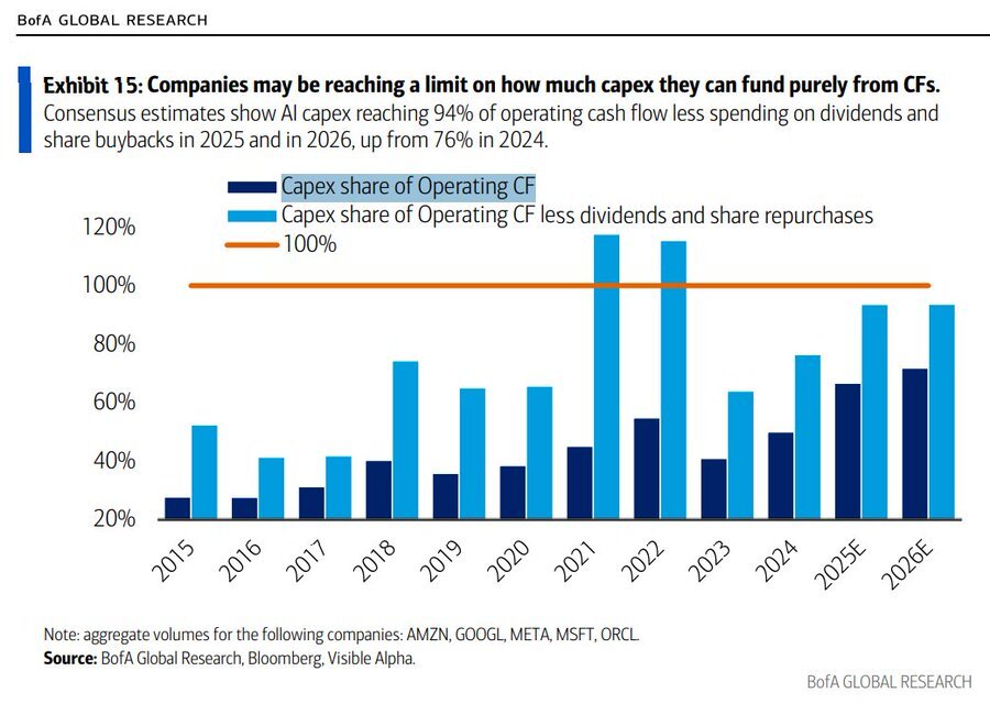 Während 2024 noch rund 76 % der operativen Cashflows in Capex flossen, dürfte der Anteil laut Konsensschätzungen 2025 und 2026 auf etwa 94 % steigen.