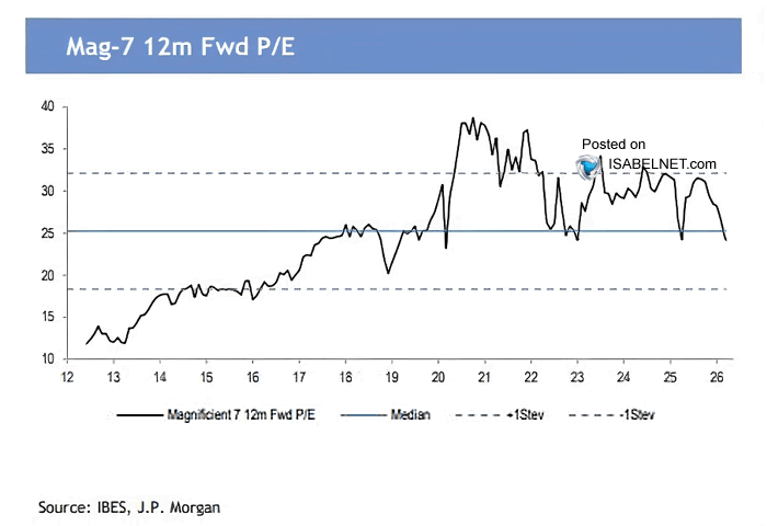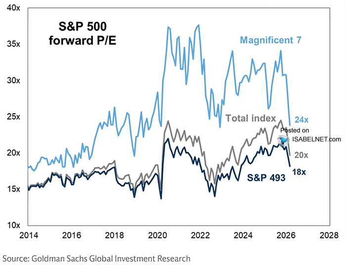 Auch bei den Mega-Caps hat sich die Bewertung spürbar abgekühlt. Die Magnificent 7 liegen zwar weiter über dem Rest des Marktes, aber der Abstand ist deutlich kleiner geworden.