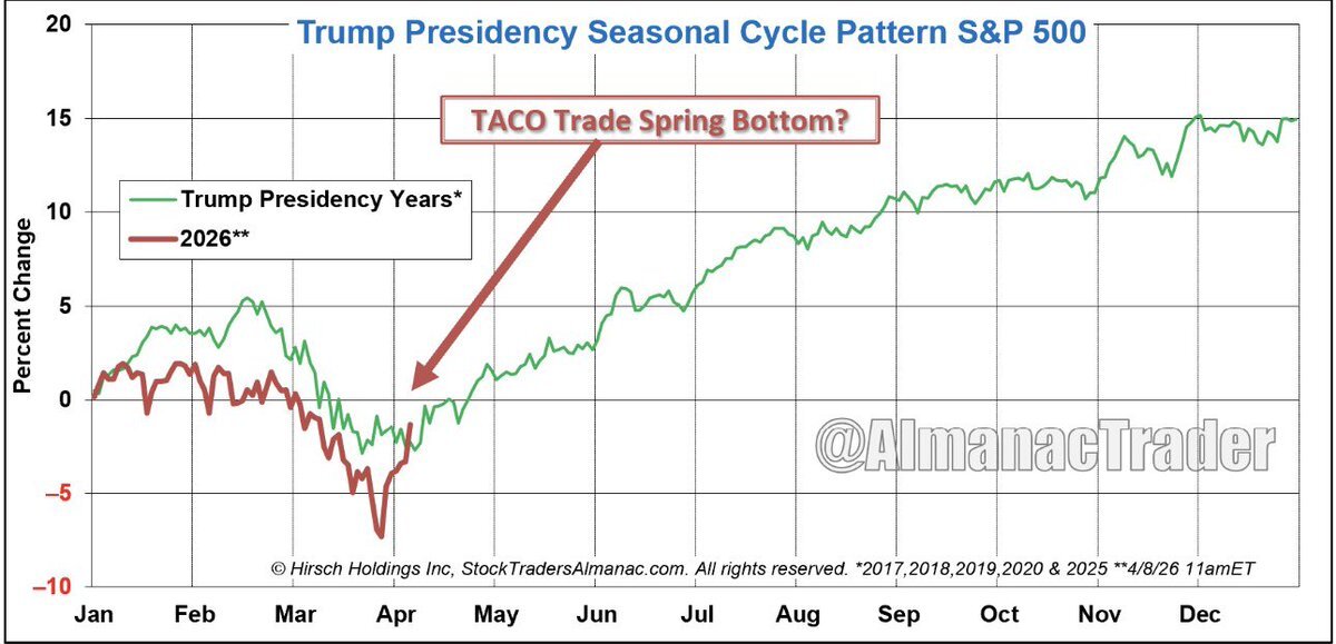 Das aktuelle Jahr ähnelt stark dem saisonalen Verlauf früherer Trump-Jahre. Nach einem schwachen März und frühen April würde das historische Muster eher auf eine Bodenbildung im Frühjahr hindeuten.