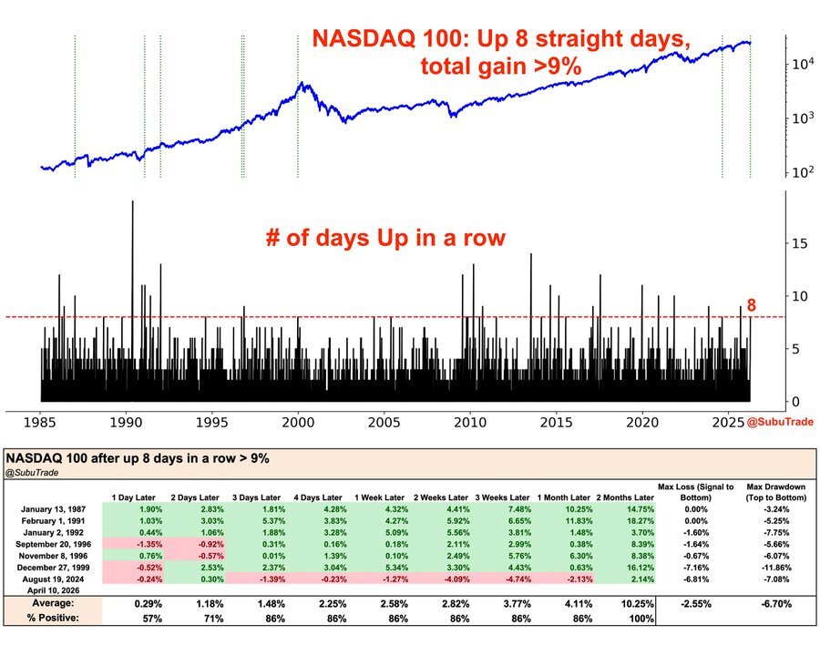 📌 9,4 % bei gleichzeitig acht Aufwärtstagen