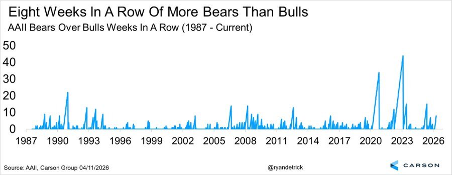 📌 Wenn Anleger acht Wochen lang bärisch bleiben, obwohl der Markt nahe Allzeithochs notiert