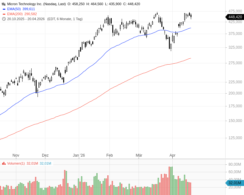 - Micron Technology Inc. - WKN: 869020 - ISIN: US5951121038 - Kurs: 448,330 $ (Nasdaq)