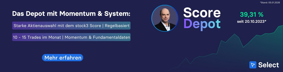 Fazit: In den vergangenen Wochen sind die Gewinnschätzungen für Micron Technology und andere Hersteller von Speicherchips weiter in die Höhe geschnellt. Die Analystenschätzungen sind dabei sogar deutlich stärker gestiegen als die Kurse. Im Score-Depot, das im Rahmen von stock3 Select und stock3 Ultimate geführt wird, ist die Micron-Aktie seit Dezember 2025 enthalten. Die Position befindet sich aktuell mehr als 70 % im Plus.