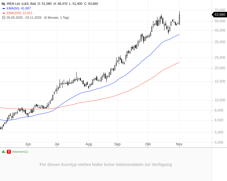 - IREN Ltd. - WKN: A3C7R6 - ISIN: AU0000185993 - Kurs: 60,750 $ (Nasdaq)