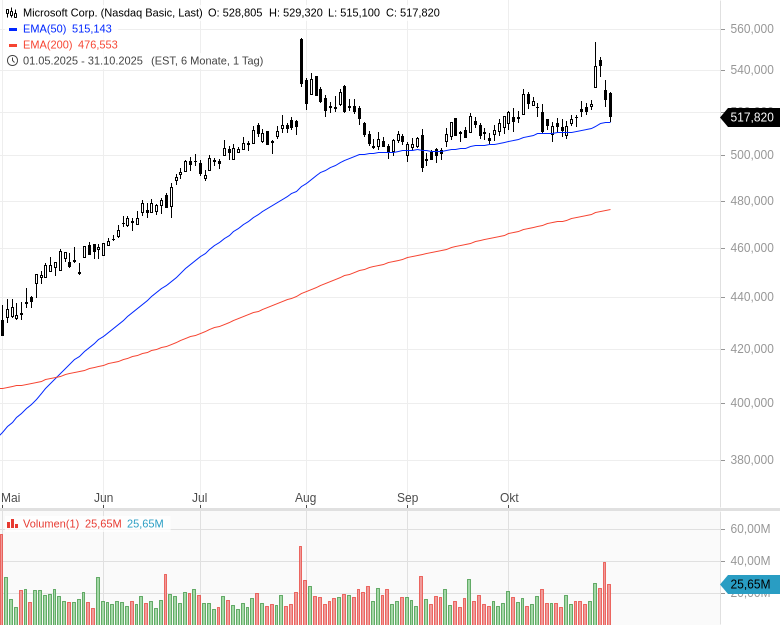 - Microsoft Corp.Kursstand: 517,810 $ (Nasdaq) - Zum Zeitpunkt der VeröffentlichungVerkaufenKaufen