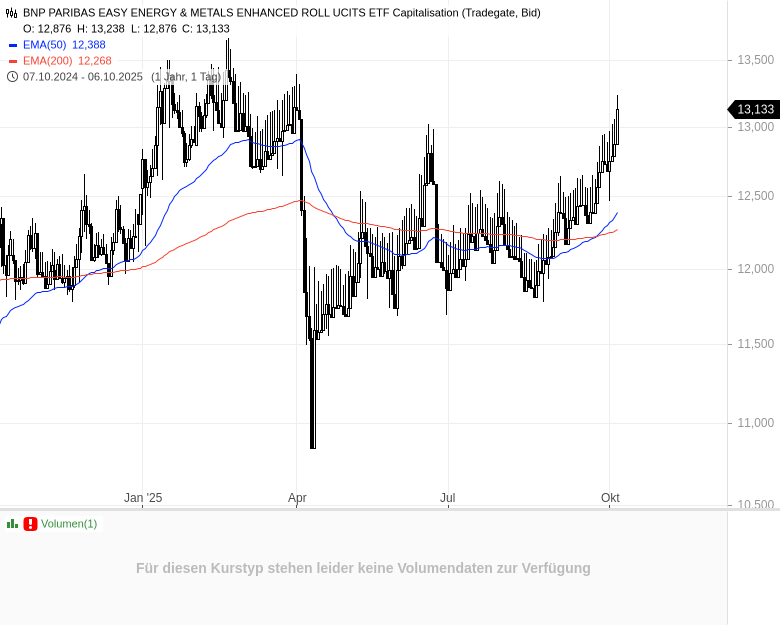 - BNP PARIBAS EASY ENERGY & METALS ENHANCED ROLL UCITS ETF Capitalisation - WKN: A2AJZL - ISIN: LU1291109533 - Kurs: 13,231 € (Tradegate)