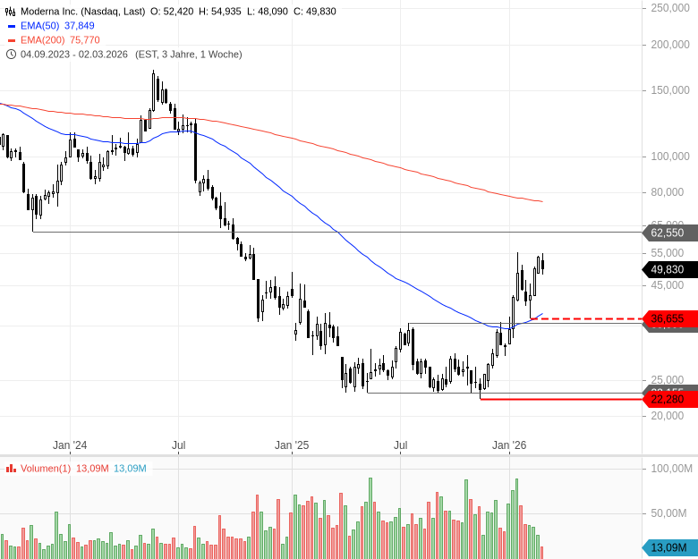 - Moderna Inc. - WKN: A2N9D9 - ISIN: US60770K1079 - Kurs: 49,830 $ (Nasdaq)