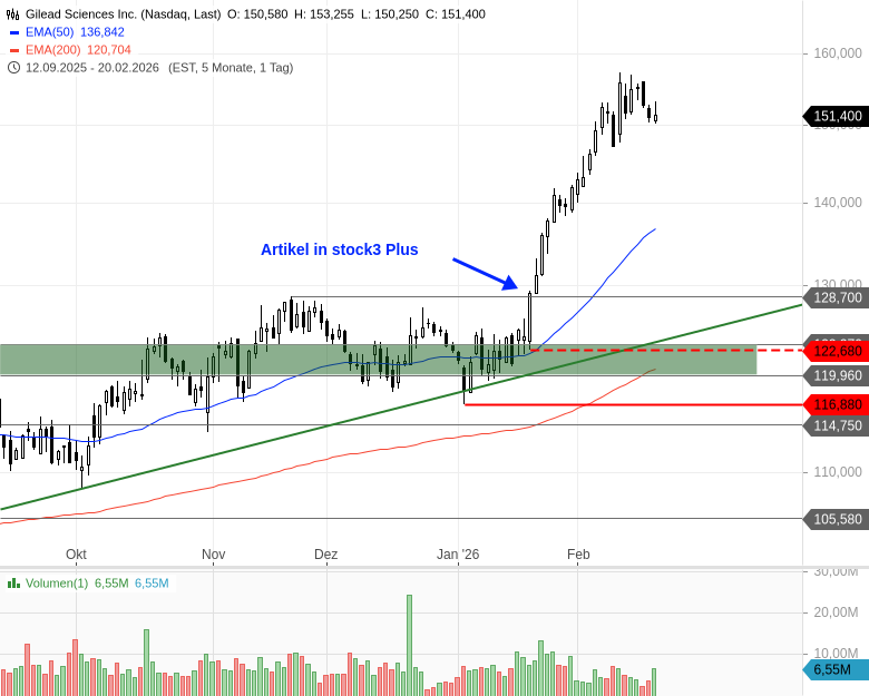 - Gilead Sciences Inc. - WKN: 885823 - ISIN: US3755581036 - Kurs: 151,400 $ (Nasdaq)