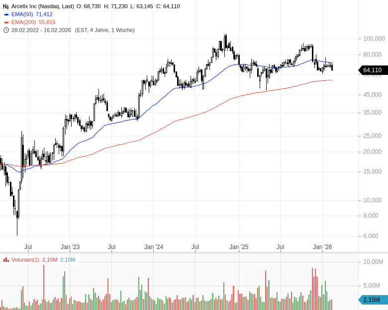 - Arcellx Inc - WKN: A3DEJC - ISIN: US03940C1009 - Kurs: 64,110 $ (Nasdaq)