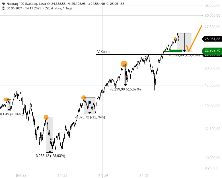 - Nasdaq-100Kursstand: 25.061,88 Pkt (Nasdaq) - Zum Zeitpunkt der Veröffentlichung