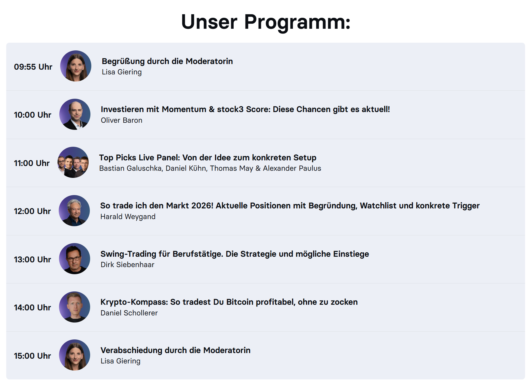 Schau Dir am besten gleich das gesamte Programm an. Die 5 Stunden von 10 bis 15 Uhr am 17. März sind absolut vollgepackt mit stock3 Select.