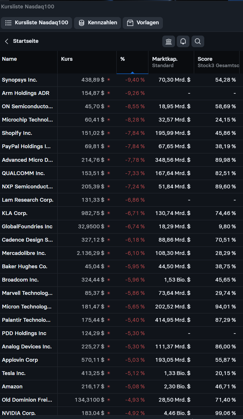 Diese Ansage triggerte gestern einen Abverkauf an den Märkten. Besonders Risk Assets gerieten stark unter Abgabedruck. US-Techaktien und Kryptowährungen. Im Techsektor gehören viele Chipaktien zu den größten gestrigen Kursverlierern.