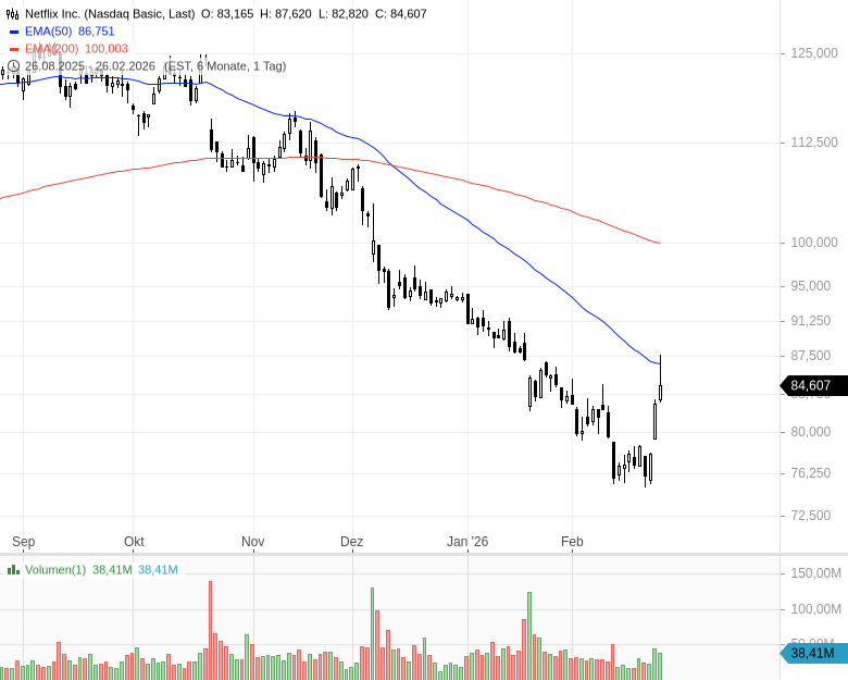 Während Paramount ins Risiko geht, konzentriert sich Netflix auf sein Kerngeschäft und plant weiterhin rund 20 Mrd. USD pro Jahr für Inhalte ein. Investoren honorieren diese Strategie sichtbar. Statt einer bilanziell anspruchsvollen Megaübernahme bleibt das Unternehmen flexibel und profitabel.