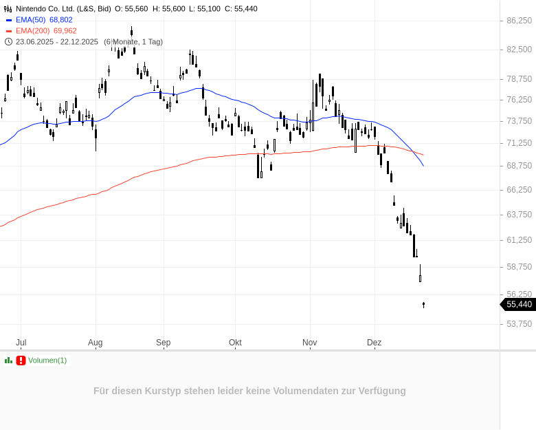 Damit hat Nintendo deutlich an Wert eingebüßt und einen Großteil der Euphorie rund um den Launch der Switch 2 korrigiert, die die Aktie im Sommer noch auf mehr als 85 EUR getragen hatte. Der Rückgang markiert dabei weniger einen Vertrauensverlust in das Geschäftsmodell als vielmehr eine Neubewertung der Ertragskraft.