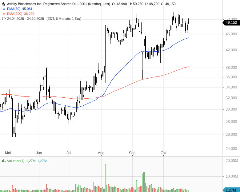 - Avidity Biosciences Inc. Registered Shares DL -,0001 - ISIN: US05370A1088 - Kurs: 49,150 $ (Nasdaq)