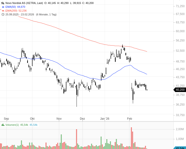 An der Börse kommt das nicht gut an. Die Novo-Nordisk-Aktie verliert aktuell rund 8 % an Wert. Anleger hatten gehofft, dass das neue Kombinationspräparat die Spitzenposition im boomenden Markt für Abnehmmedikamente sichern würde.