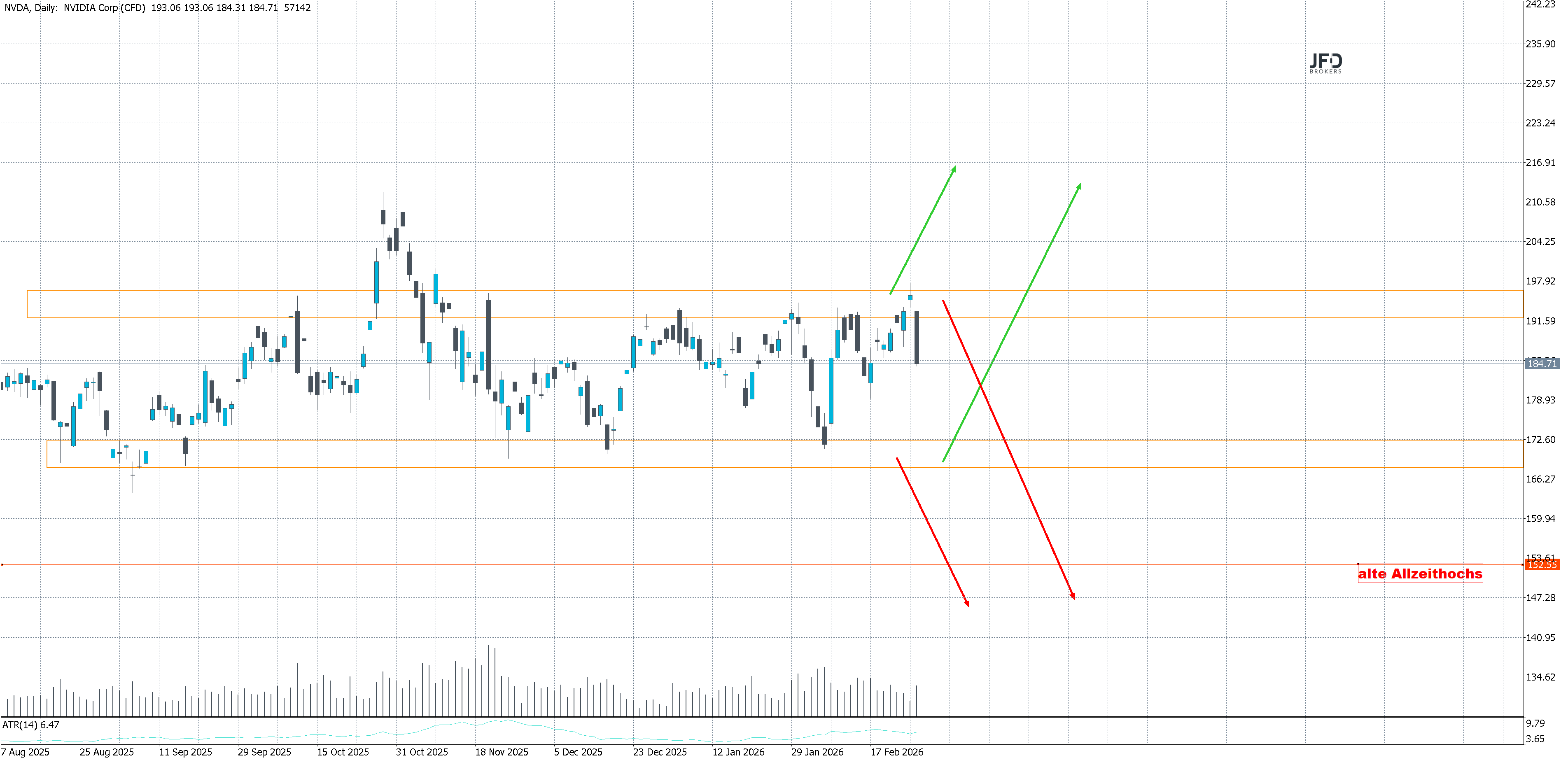 JFD Brokers bietet ausschließlich beratungsfreie Dienstleistungen an. Der Inhalt dieser Analyse enthält keine Anlageberatung bzw. Anlageempfehlung (und darf auch nicht als solche verstanden werden) und stellt keinesfalls eine Aufforderung zum Erwerb von jeglichen Finanzinstrumenten oder -produkten dar. JFD Brokers haftet nicht für Schäden, welche auf einzelne Kommentare und Aussagen auf Analysen von der JFD Brokers zurückzuführen wären / sind und übernimmt keine Gewähr in Bezug auf Vollständigkeit und Richtigkeit des dargestellten Inhaltes. Somit trägt der Anleger ausschließlich alleinverantwortlich das Risiko für seine Anlageentscheidungen.