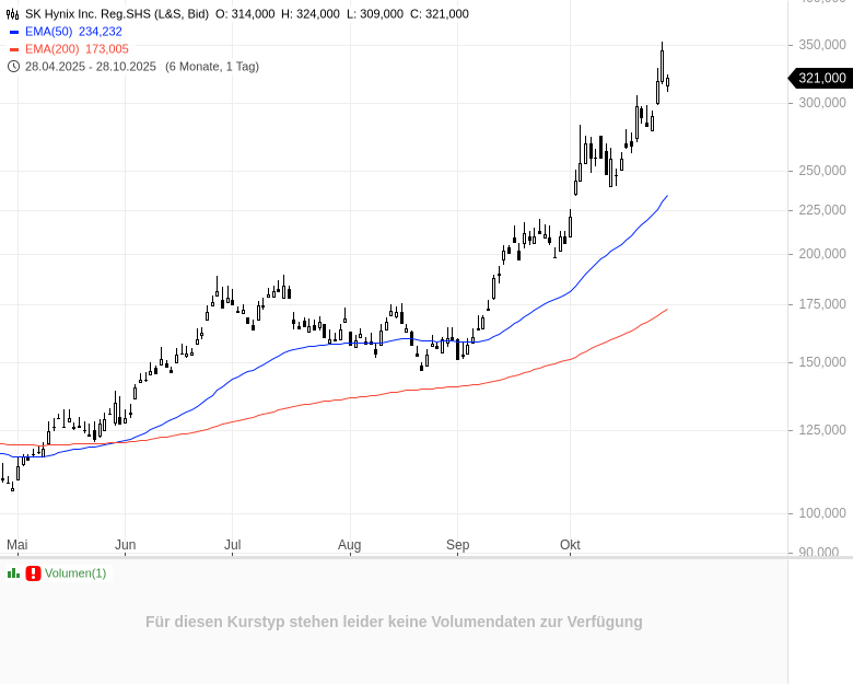 - SK Hynix Inc. Reg.SHSKursstand: 321,000 € (L&S) - Zum Zeitpunkt der VeröffentlichungVerkaufenKaufen