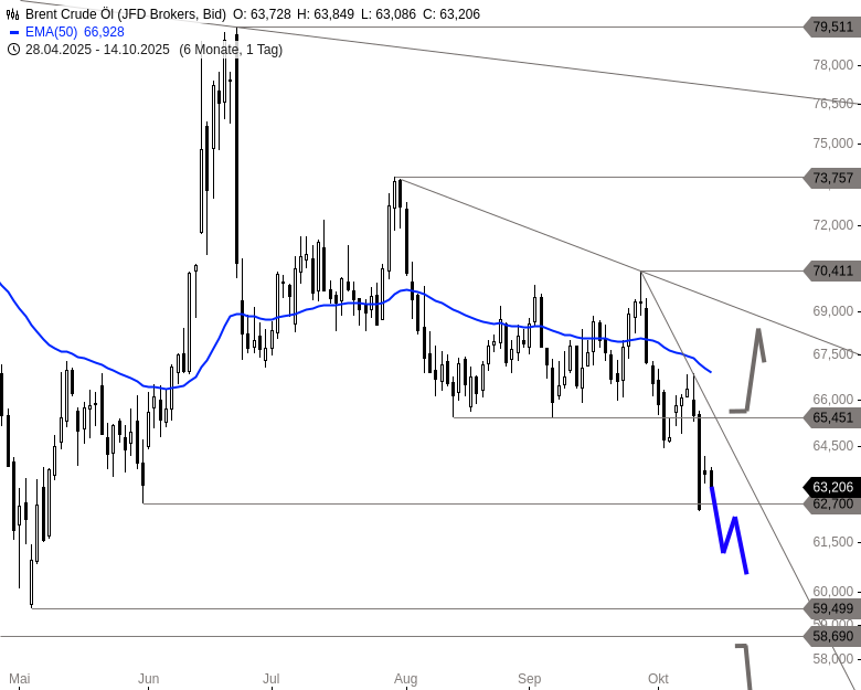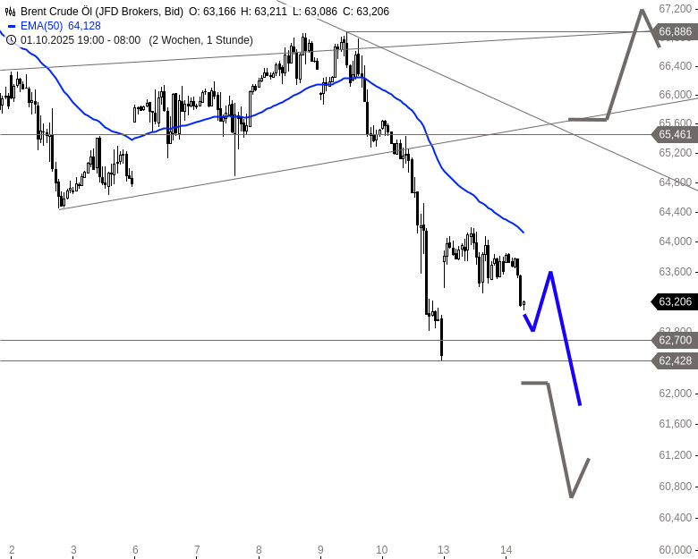 - Brent Crude ÖlKursstand: 63,206 $/bbl. (JFD Brokers) - Zum Zeitpunkt der Veröffentlichung