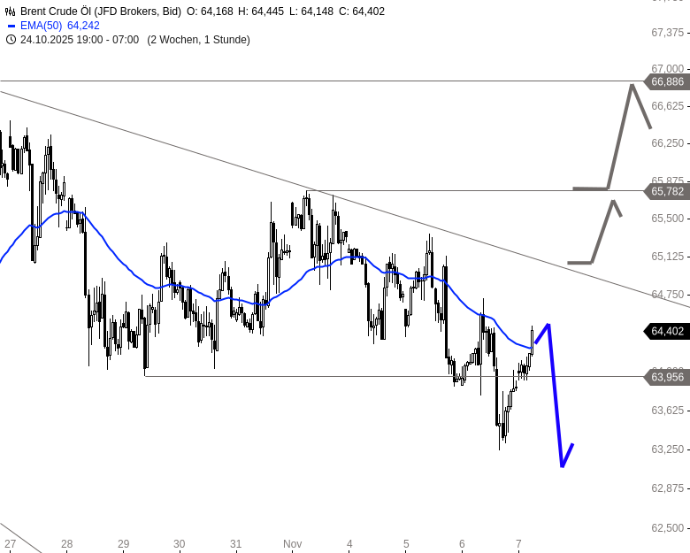 - Brent Crude ÖlKursstand: 64,402 $/bbl. (JFD Brokers) - Zum Zeitpunkt der Veröffentlichung