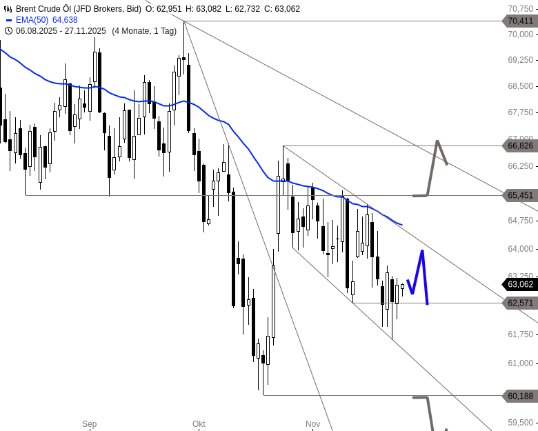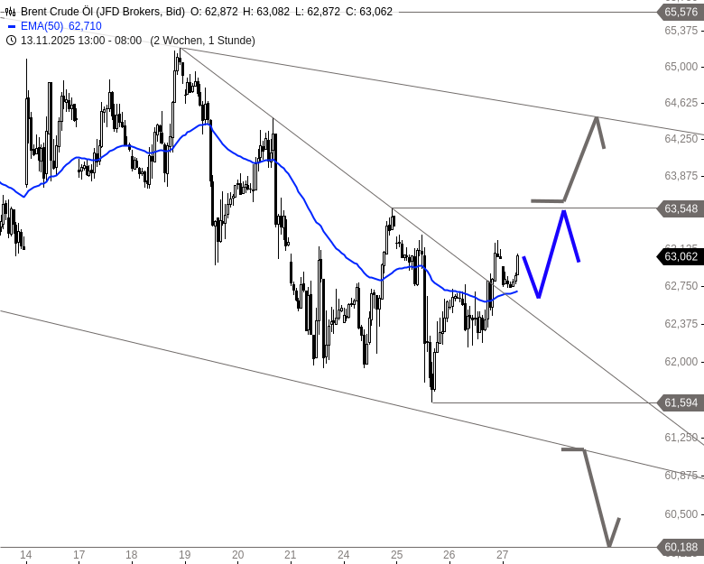 - Brent Crude ÖlKursstand: 63,062 $/bbl. (JFD Brokers) - Zum Zeitpunkt der Veröffentlichung