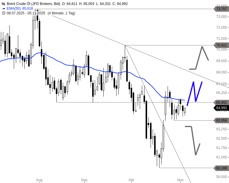ÖLPREIS (Brent): EMA 50 bremst – Markt sucht Richtung