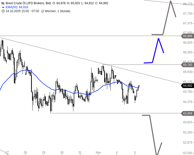 - Brent Crude ÖlKursstand: 64,992 $/bbl. (JFD Brokers) - Zum Zeitpunkt der Veröffentlichung