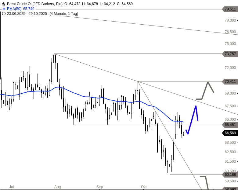 ÖLPREIS (Brent): Erholung pausiert – Pullback bleibt im Rahmen