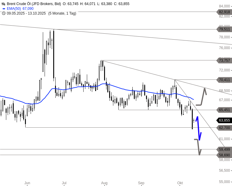 - Brent Crude ÖlKursstand: 63,855 $/bbl. (JFD Brokers) - Zum Zeitpunkt der Veröffentlichung