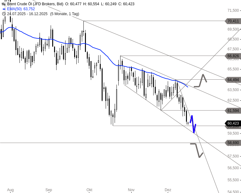 ÖLPREIS (Brent): Abwärtstrend dominiert – Risiko weiterer Tiefs