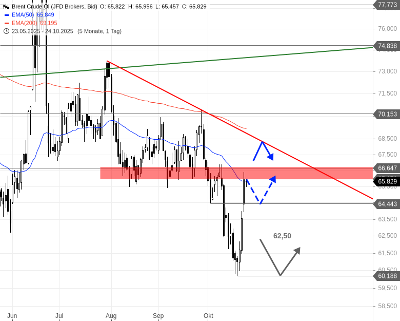 - Brent Crude ÖlKursstand: 65,808 $/bbl. (JFD Brokers) - Zum Zeitpunkt der Veröffentlichung