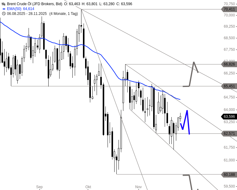 - Brent Crude ÖlKursstand: 63,596 $/bbl. (JFD Brokers) - Zum Zeitpunkt der Veröffentlichung