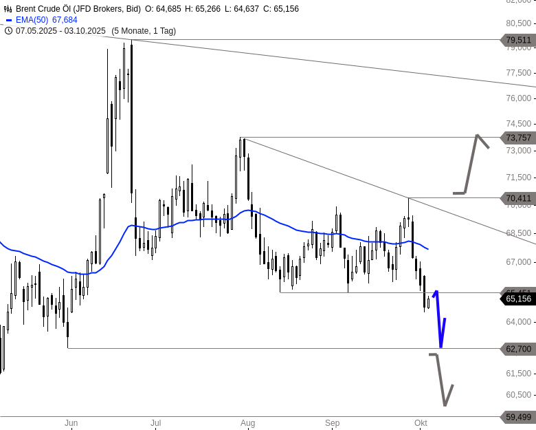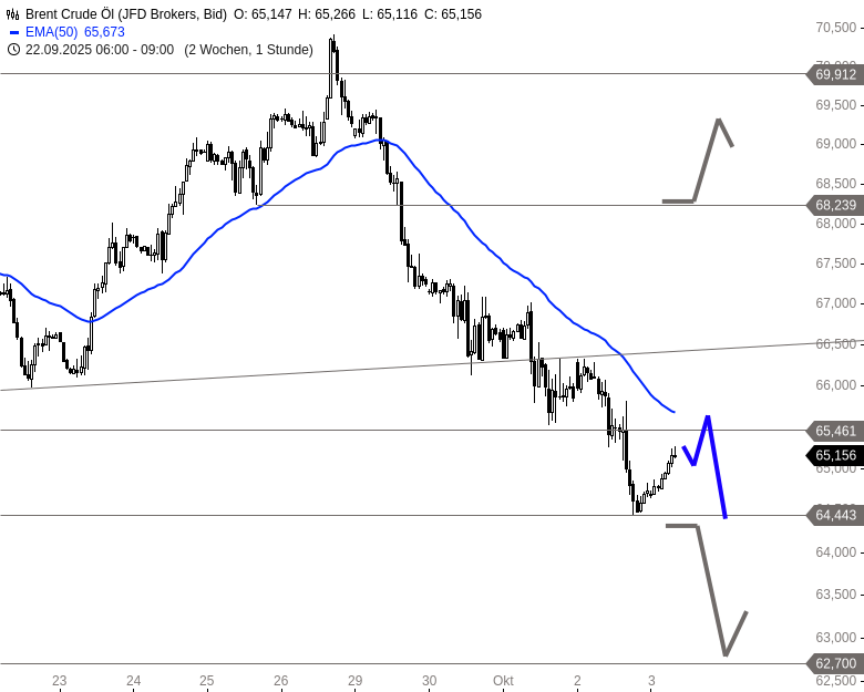 - Brent Crude ÖlKursstand: 65,156 $/bbl. (JFD Brokers) - Zum Zeitpunkt der Veröffentlichung
