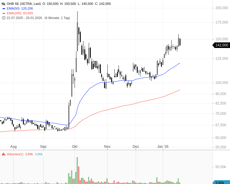 - OHB SE - WKN: 593612 - ISIN: DE0005936124 - Kurs: 148,000 € (XETRA)