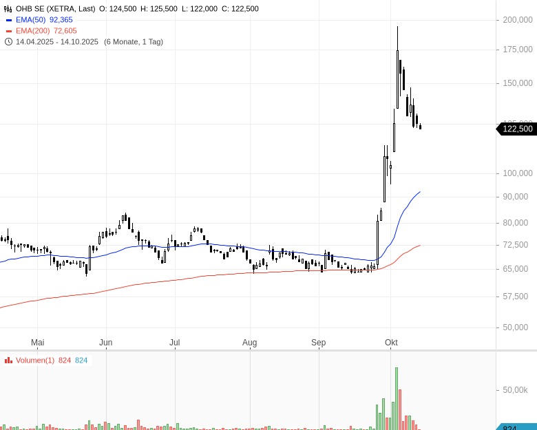 - OHB SE - WKN: 593612 - ISIN: DE0005936124 - Kurs: 123,000 € (XETRA)