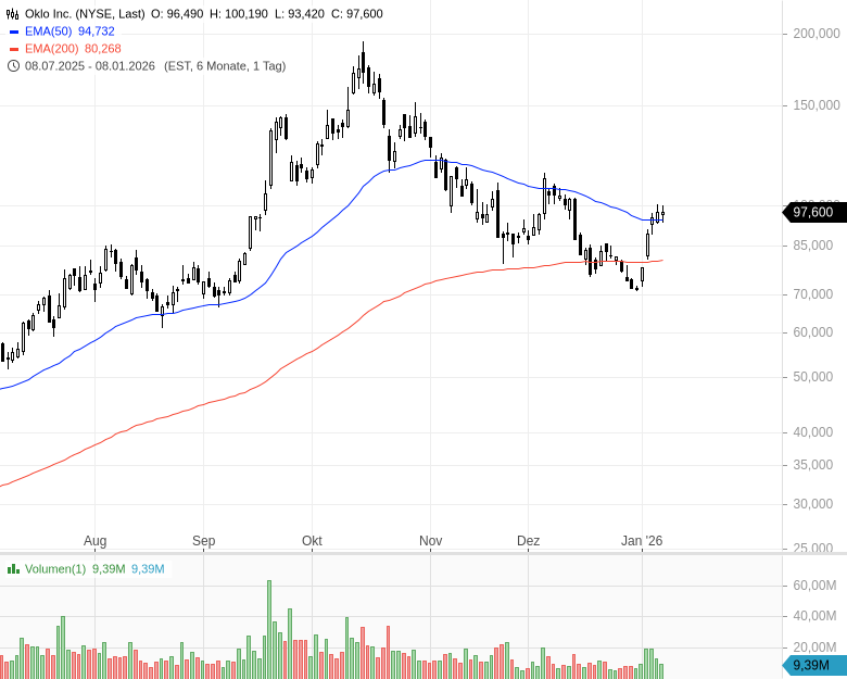 - Oklo Inc. - WKN: A3CUTU - ISIN: US02156V1098 - Kurs: 97,600 $ (NYSE)
