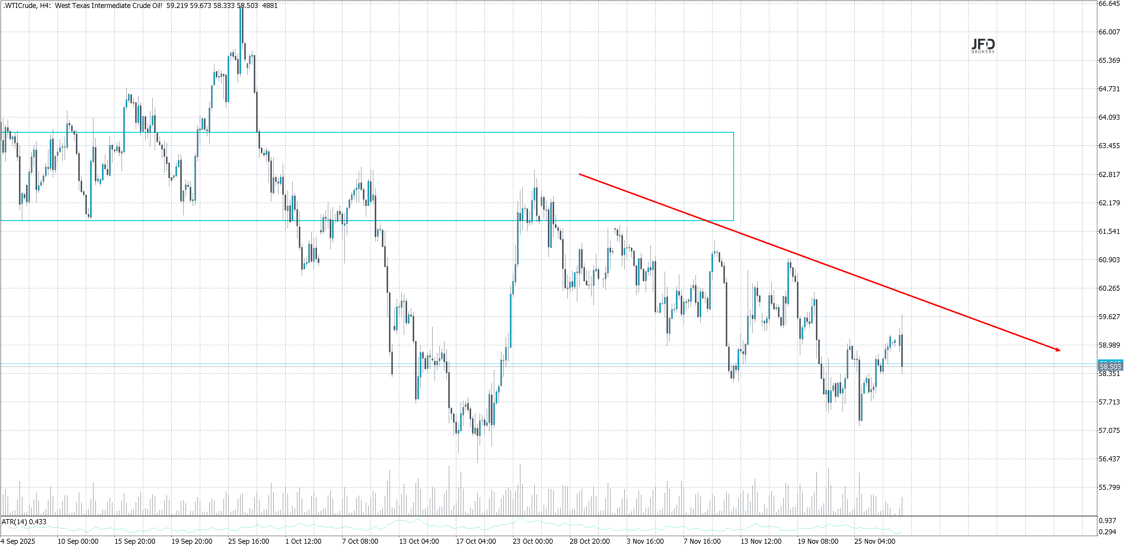 - WTI ÖlKursstand: 58,503 $/bbl. (JFD Brokers) - Zum Zeitpunkt der Veröffentlichung