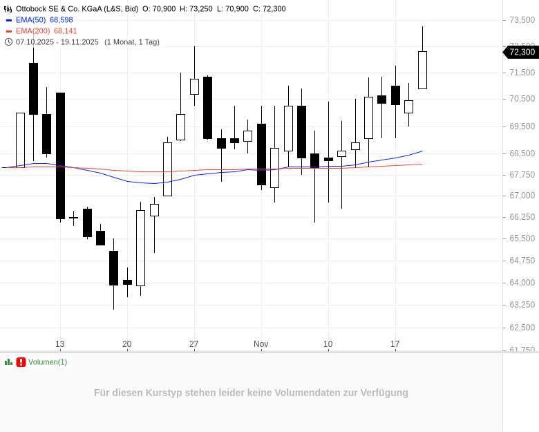 - Ottobock SE & Co. KGaAKursstand: 74,250 € (XETRA) - Zum Zeitpunkt der VeröffentlichungVerkaufenKaufen